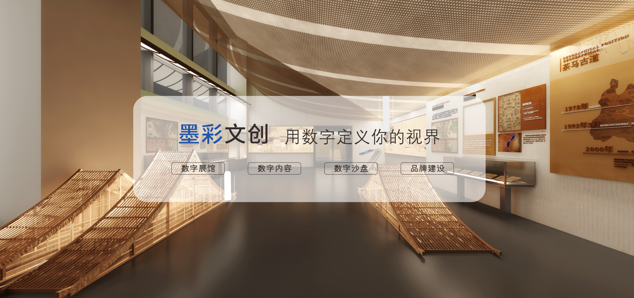 墨彩文創具備展館策劃、設計、施工、數字內容制作一體化總包服務執行團隊,業務涉及數字展館、數字內容、數字沙盤、標識標牌、美陳等多個領域。